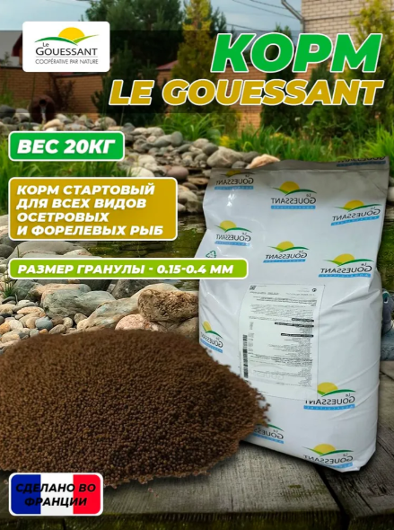 Профессиональный стартовый корм от французского производителя Le Gouessant, созданный специально для интенсивного выращивания молоди осетровых и лососевых видов рыб. Этот продукционный корм обеспечивает оптимальные условия для здорового роста и развития мальков на самых критичных этапах их жизненного цикла.